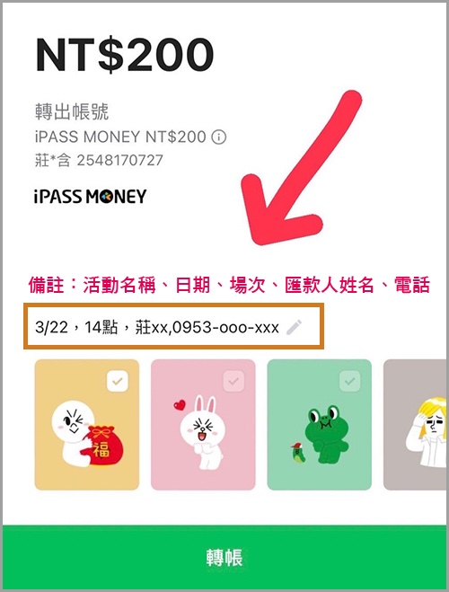 請掃描 LINE Pay QRcode付款(收款者EVE) {請備註匯款人姓名或LINE名稱&電話+日期.場次.以利核對} 或